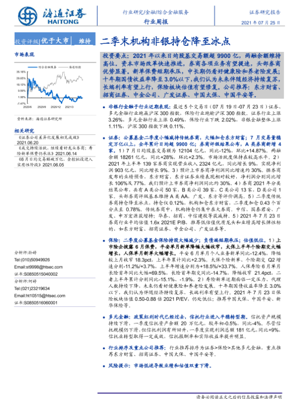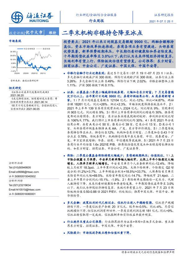 【海通证券】【20210725】综合金融行业周报:二季末机构非银持仓降至冰点-11页
