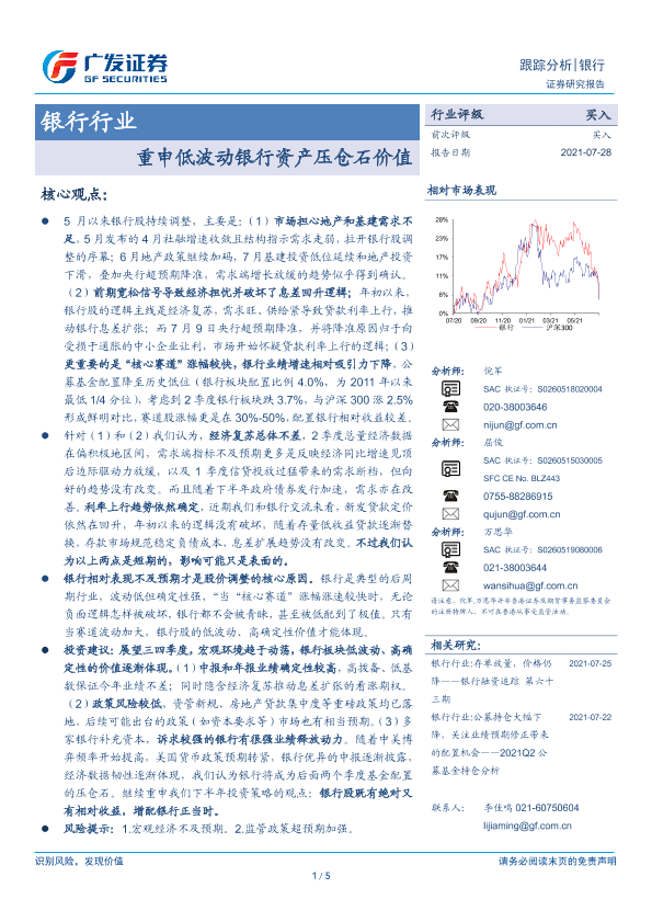 【广发证券】【20210728】银行行业跟踪分析:重申低波动银行资产压仓石价值-5页