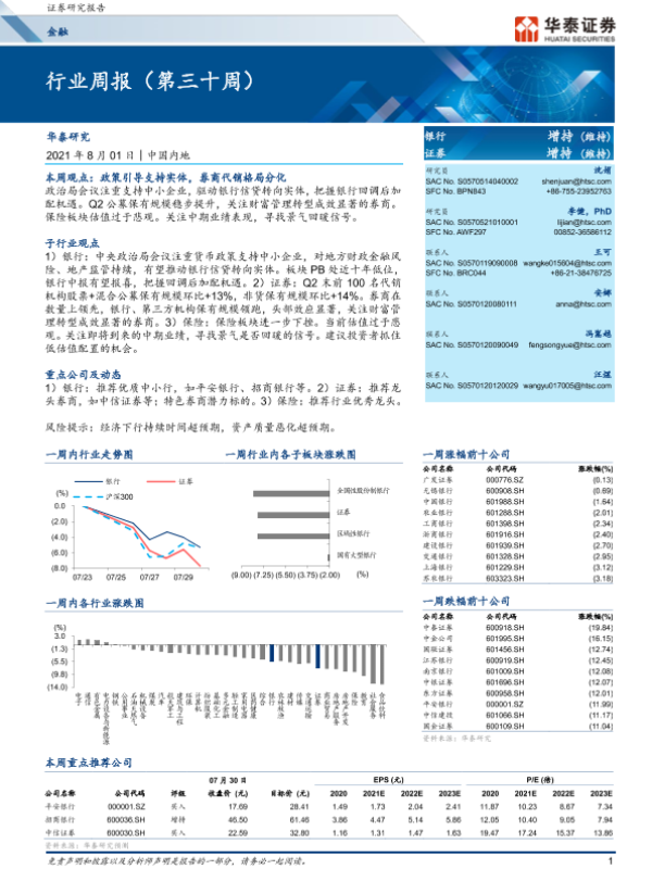 【华泰证券】【20210801】银行业周报(第三十周)-27页