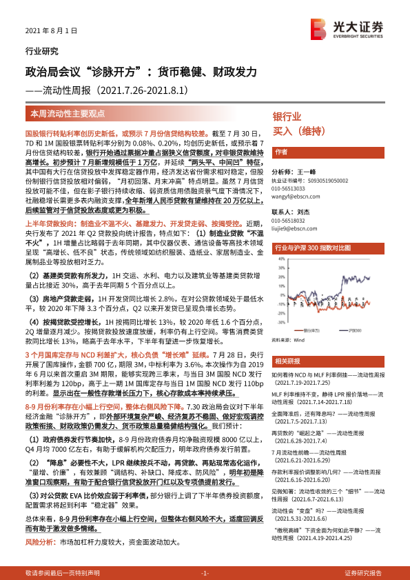 【光大证券】【20210801】政治局会议“诊脉开方”:货币稳健、财政发力-6页