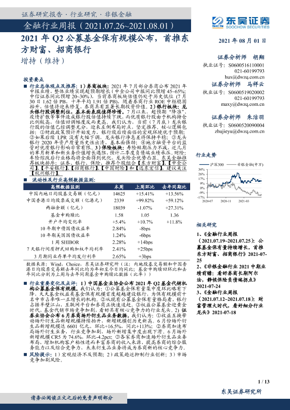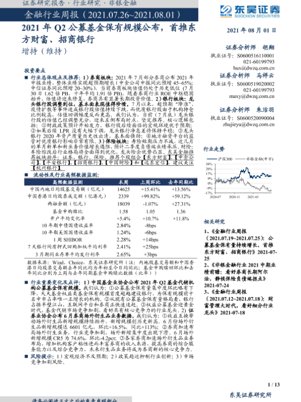 【东吴证券】【20210801】2021年Q2公募基金保有规模公布,首推东方财富、招商银行-13页