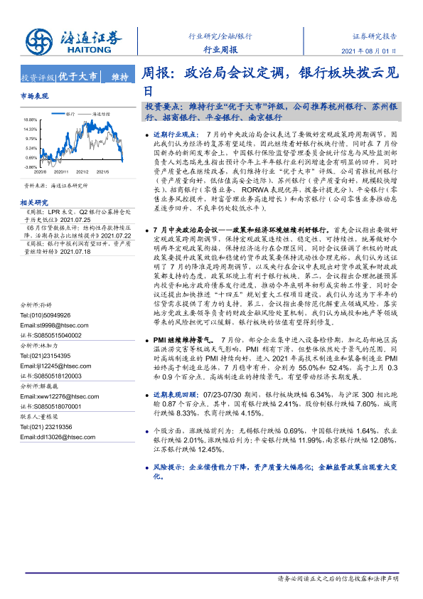 【海通证券】【20210801】银行业周报:政治局会议定调,银行板块拨云见日-8页
