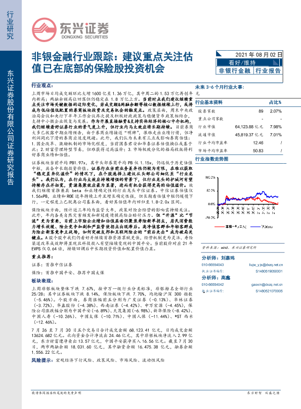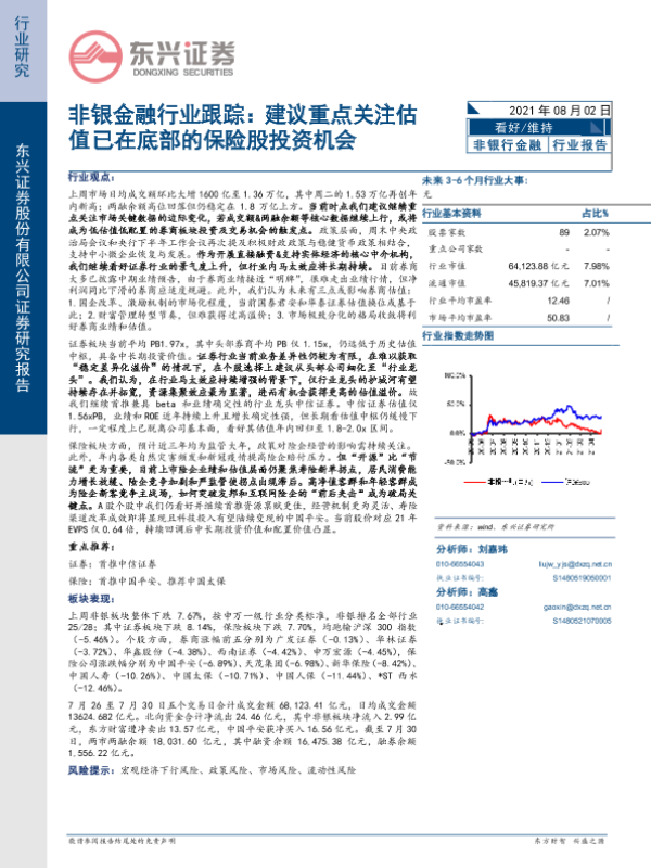 【东兴证券】【20210802】非银金融行业跟踪:建议重点关注估值已在底部的保险股投资机会-9页