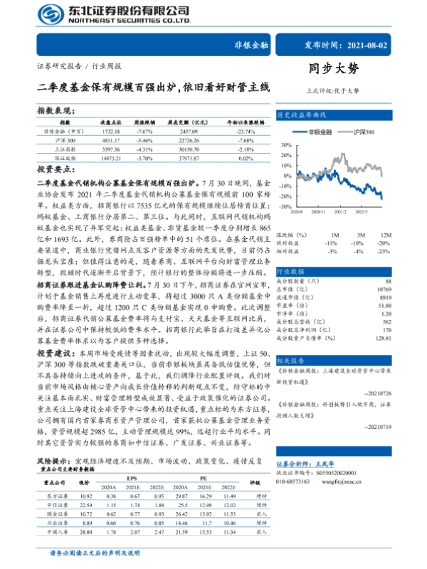 【东北证券】【20210802】二季度基金保有规模百强出炉,依旧看好财管主线-18页