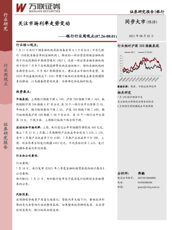 【万联证券】【20210802】关注市场利率走势变动-7页
