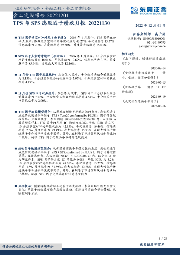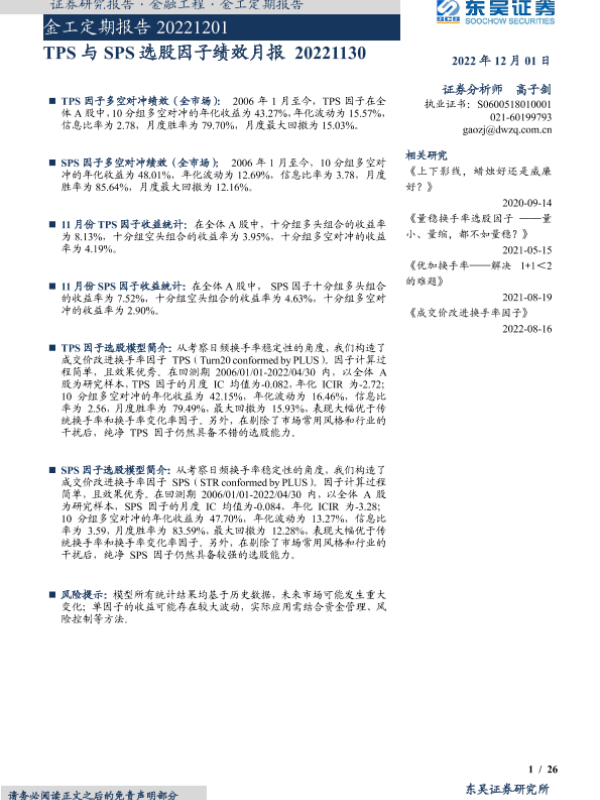 【东吴证券】【20221201】金工定期报告:TPS与SPS选股因子绩效月报-26页