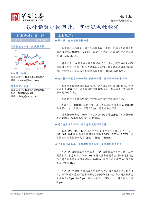 【华安证券】【20210808】银行行业周报:银行指数小幅回升,市场流动性稳定-23页