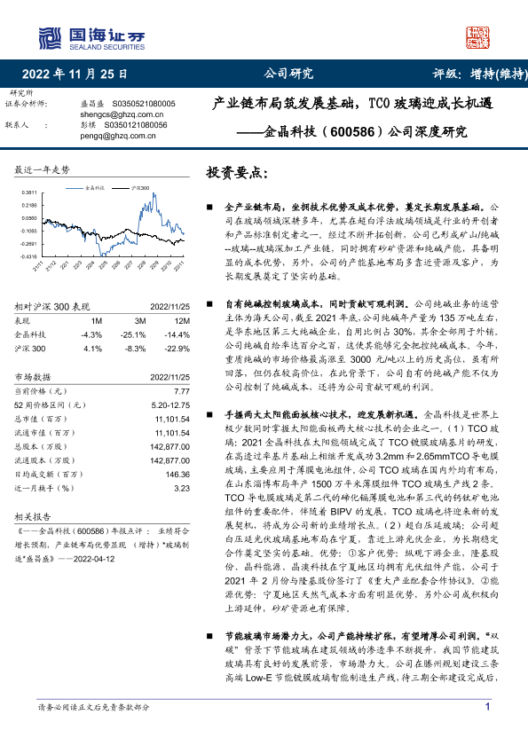 【国海证券】【20221125】金晶科技:产业链布局筑发展基础,TCO玻璃迎成长机遇-22页