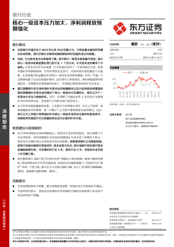 【东方证券】【20210810】银行行业深度报告:核心一级资本压力加大,净利润释放预期强化-19页