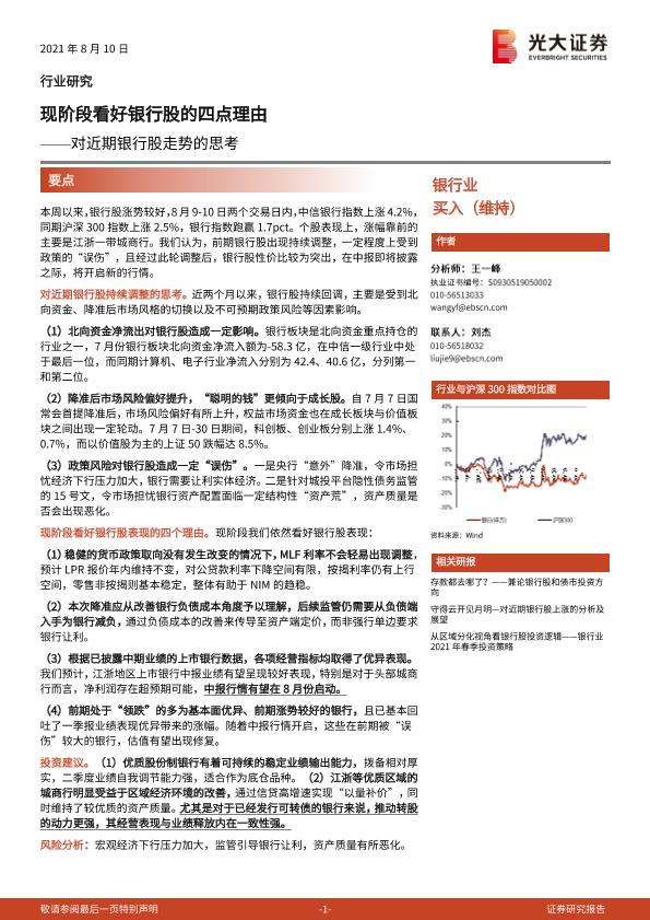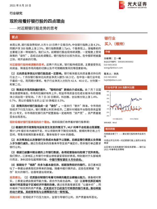 【光大证券】【20210810】对近期银行股走势的思考:现阶段看好银行股的四点理由-10页