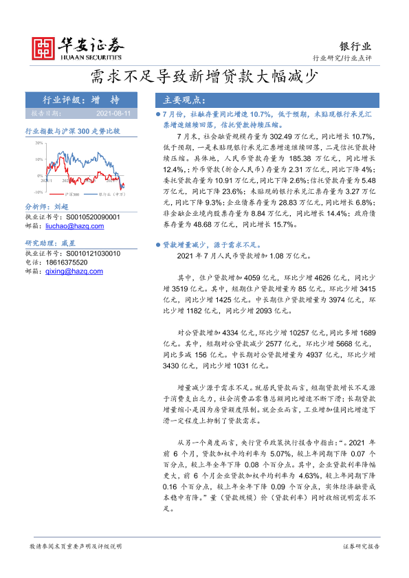 【华安证券】【20210811】需求不足导致新增贷款大幅减少-7页