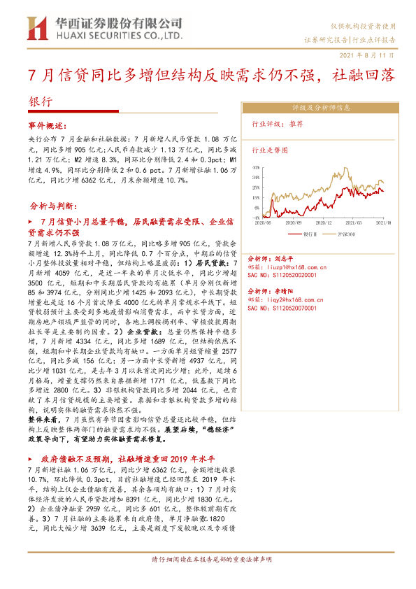 【华西证券】【20210811】7月信贷同比多增但结构反映需求仍不强,社融回落-4页