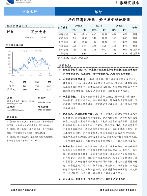 【财信证券】【20210812】银行:净利润高速增长,资产质量稳健提高-6页