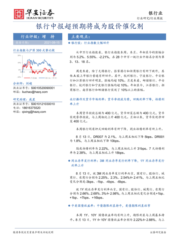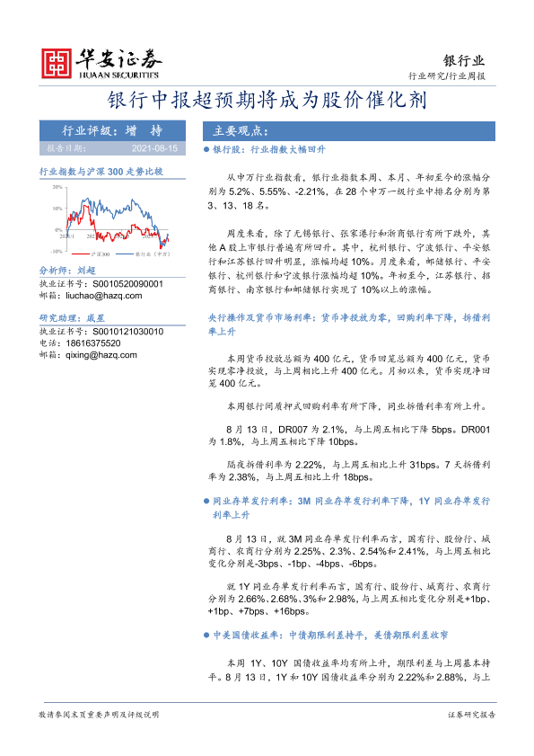 【华安证券】【20210815】银行行业周报:银行中报超预期将成为股价催化剂-23页