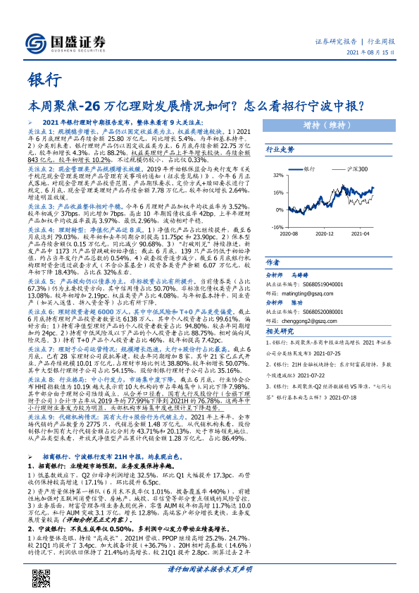 【国盛证券】【20210815】银行本周聚焦:26万亿理财发展情况如何?怎么看招行宁波中报?-21页