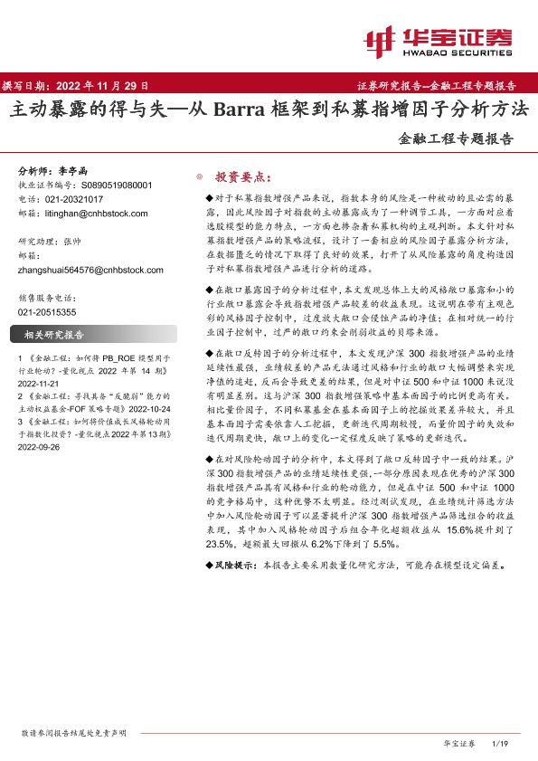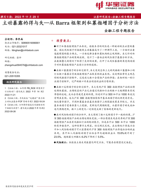 【华宝证券】【20221129】金融工程专题报告:主动暴露的得与失_从Barra框架到私募指增因子分析方法-19页
