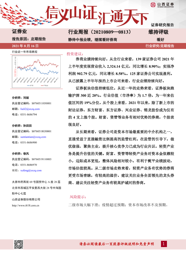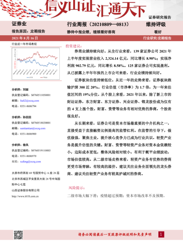 【山西证券】【20210816】证券业行业周报:静待中报业绩,继续看好券商-7页