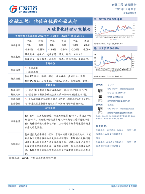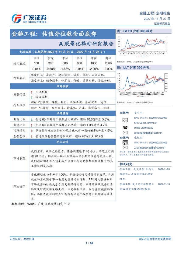 【广发证券】【20221127】金融工程:A股量化择时研究报告,估值分位数全面底部-24页