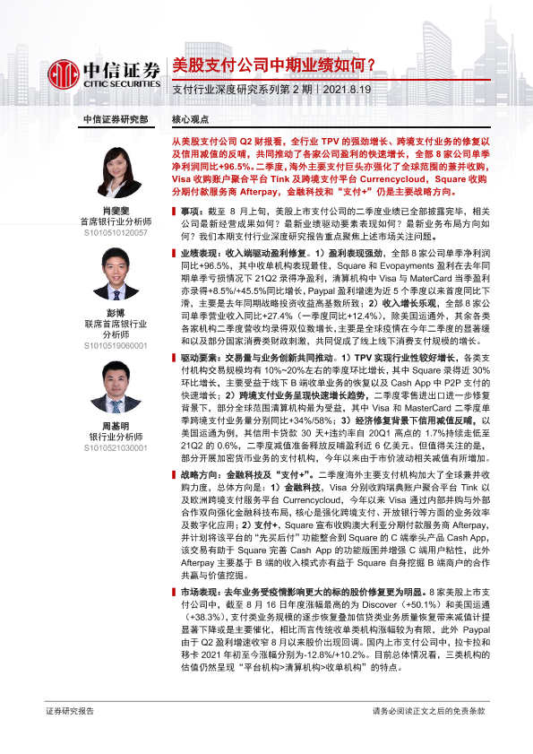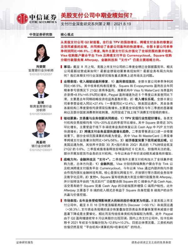 【中信证券】【20210819】美股支付公司中期业绩如何?-12页