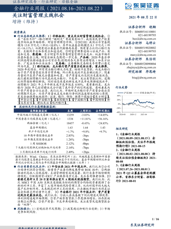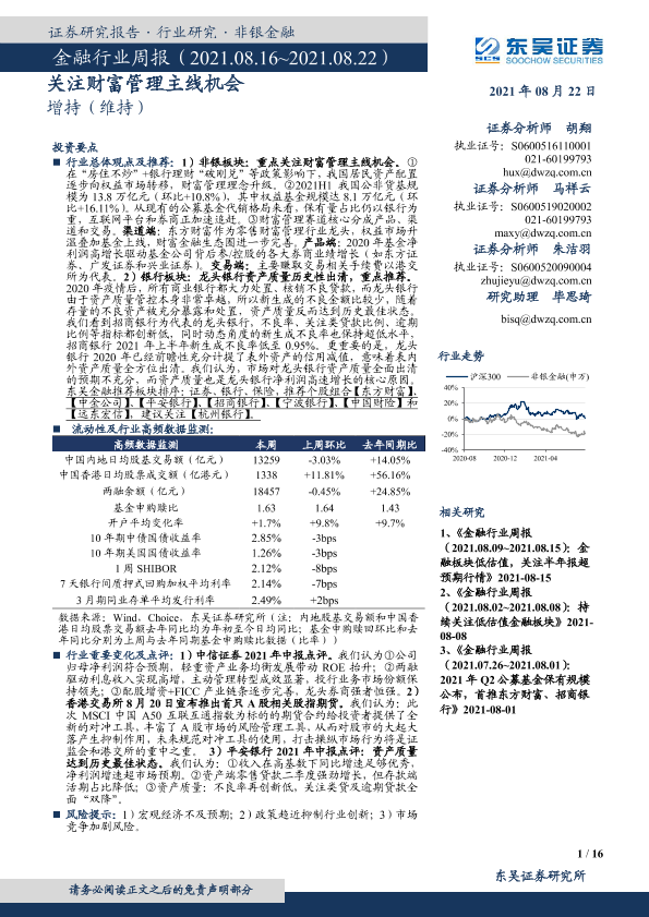 【东吴证券】【20210822】金融行业周报:关注财富管理主线机会-16页