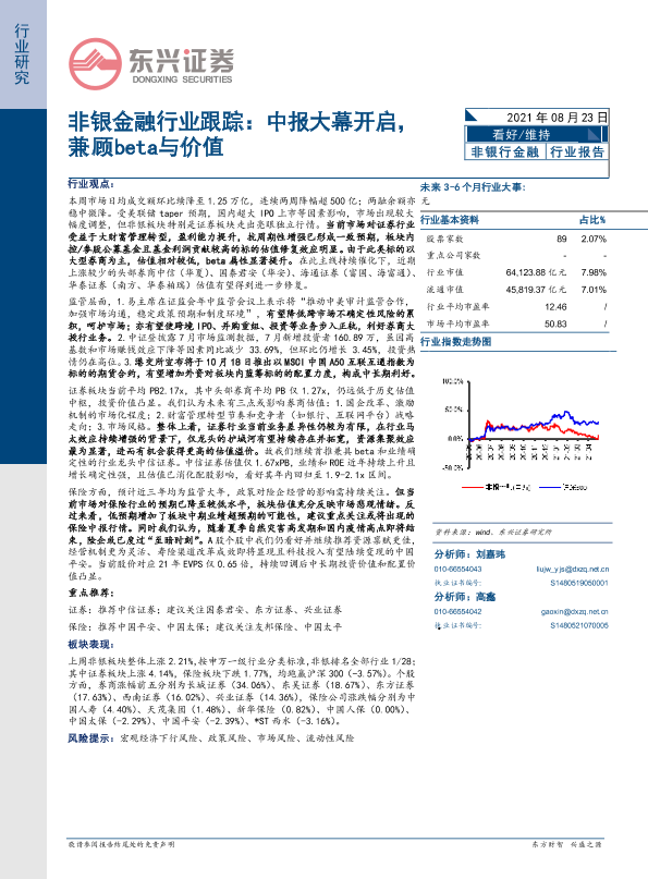 【东兴证券】【20210823】非银金融行业跟踪:中报大幕开启,兼顾beta与价值-10页