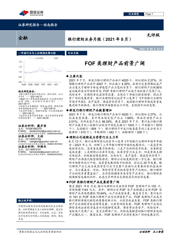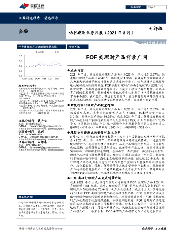 【国信证券】【20210823】银行理财业务月报:FOF类理财产品前景广阔-14页