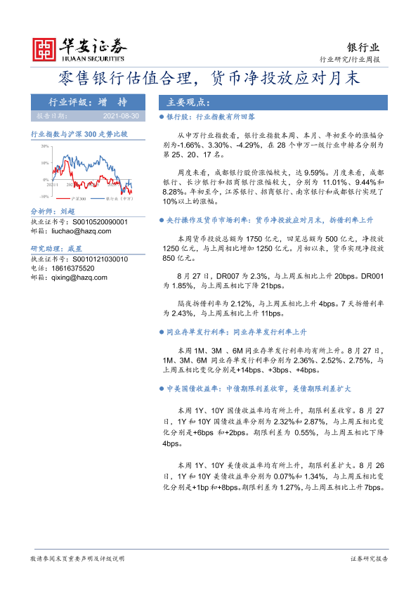 【华安证券】【20210830】银行业行业周报:零售银行估值合理,货币净投放应对月末-24页