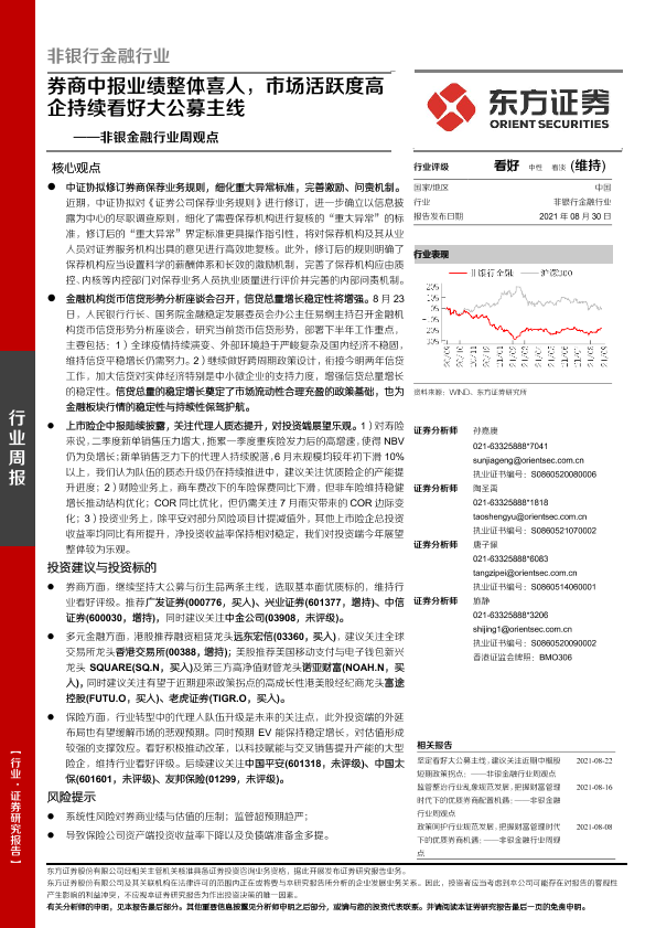 【东方证券】【20210830】非银金融行业周观点:券商中报业绩整体喜人,市场活跃度高企持续看好大公募主线-12页