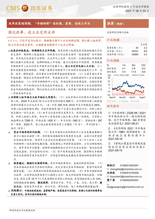 【海通证券】【20210903】非银行金融:深化改革、设立北交所点评:改革政策超预期,“专精特新”迎机遇,券商、 创投大作为-3页
