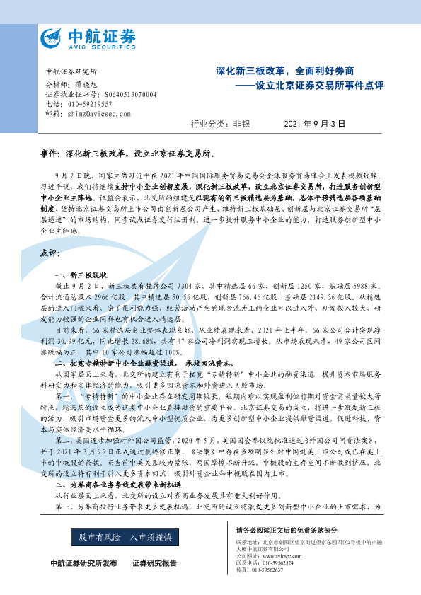【中航证券】【20210903】设立北京证券交易所事件点评-深化新三板改革,全面利好券商-3页