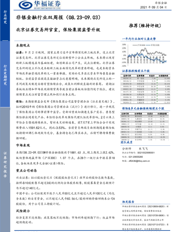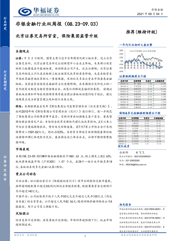 【华福证券】【20210904】非银金融行业双周报:北京证券交易所官宣,保险集团监管升级-11页