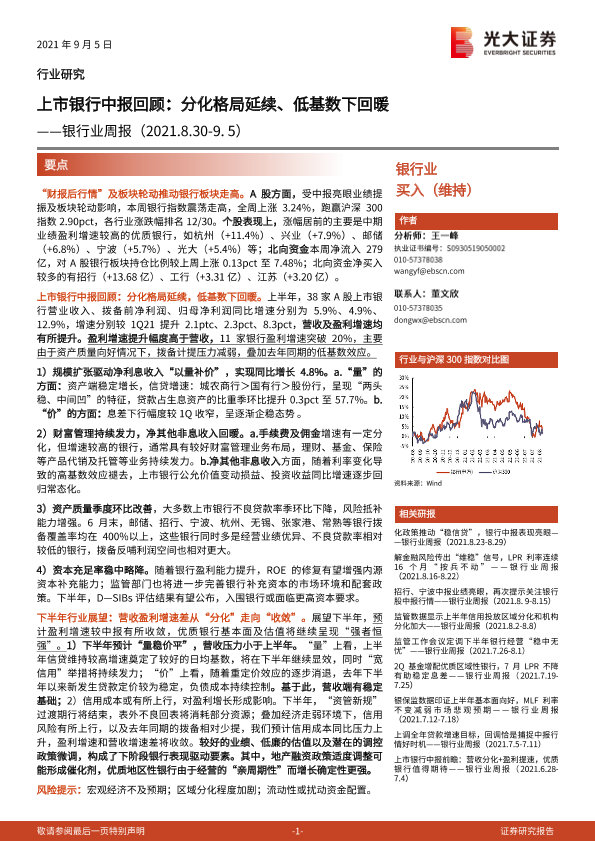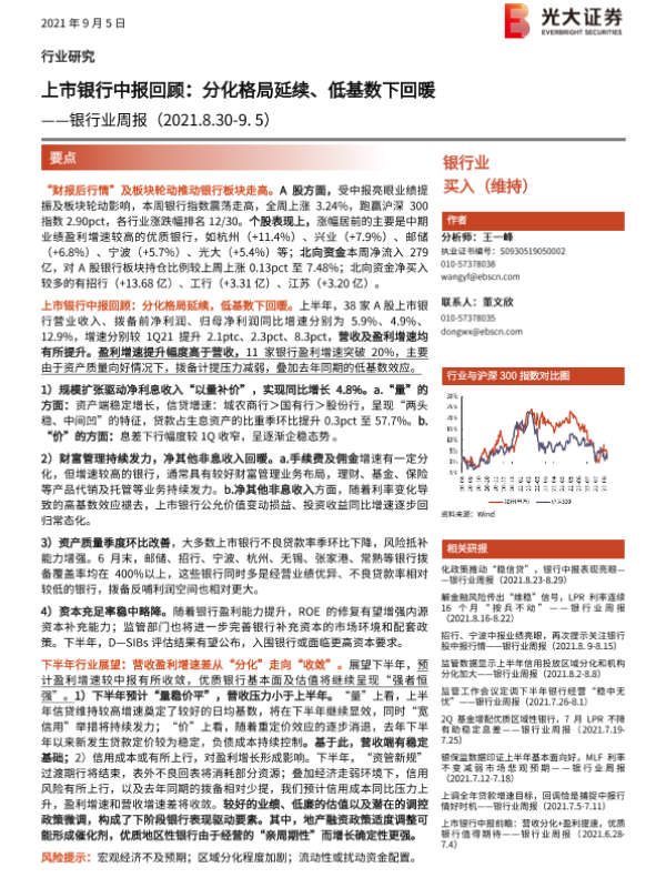 【光大证券】【20210905】上市银行中报回顾:分化格局延续、低基数下回暖-18页