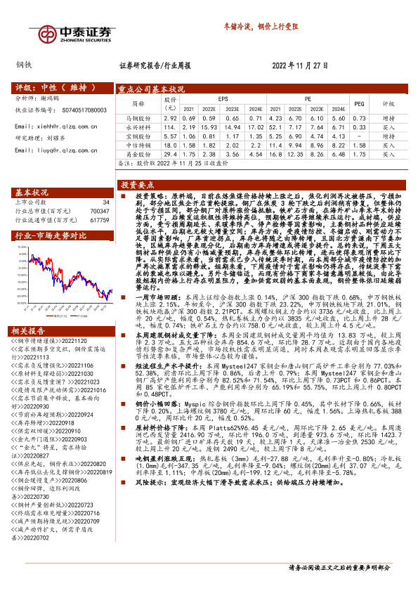 【中泰证券】【20221127】钢铁行业周报:冬储冷淡,钢价上行受阻-14页