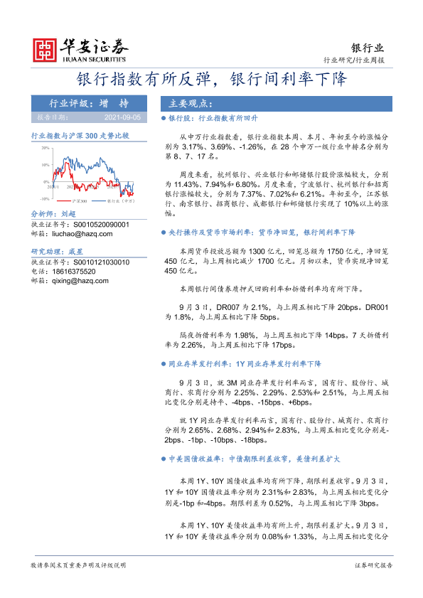 【华安证券】【20210905】银行行业周报:银行指数有所反弹,银行间利率下降-23页