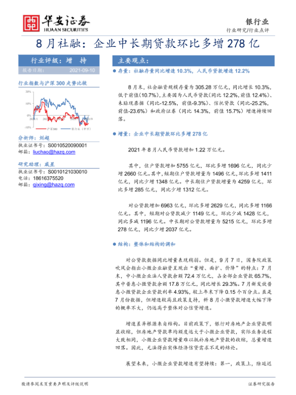 【华安证券】【20210910】8月社融:企业中长期贷款环比多增278亿-7页