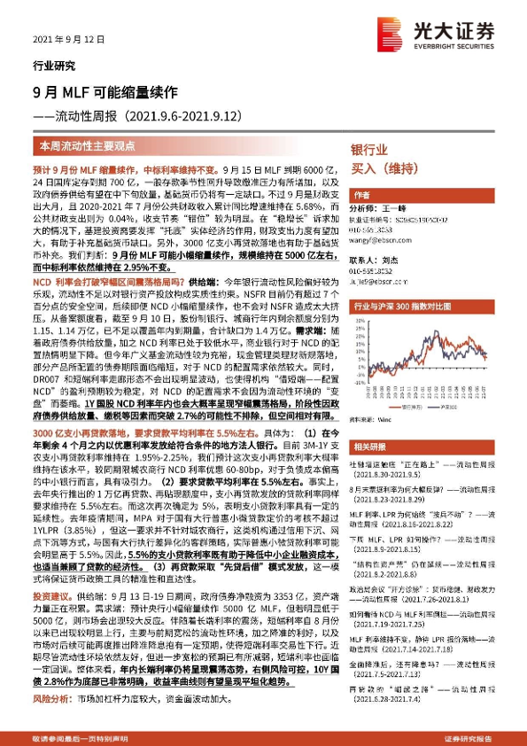 【光大证券】【20210912】银行业流动性周报:9月MLF可能缩量续作-7页