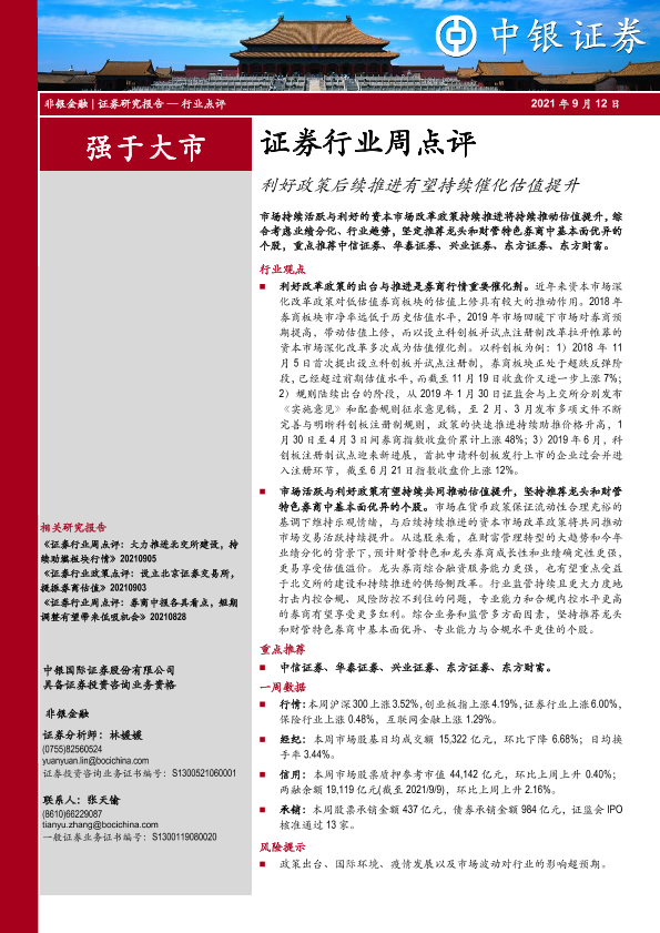 【中银证券】【20210912】证券行业周点评:利好政策后续推进有望持续催化估值提升-8页