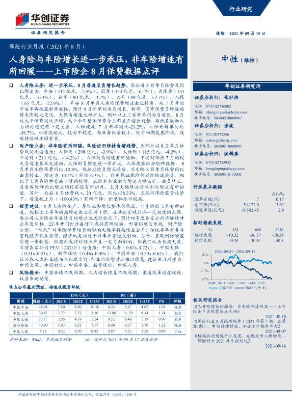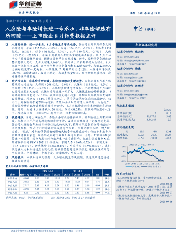 【华创证券】【20210919】上市险企8月保费数据点评-7页