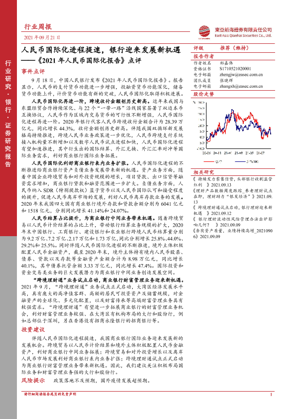 【东亚前海证券】【20210921】人民币国际化进程提速,银行迎来发展新机遇-15页