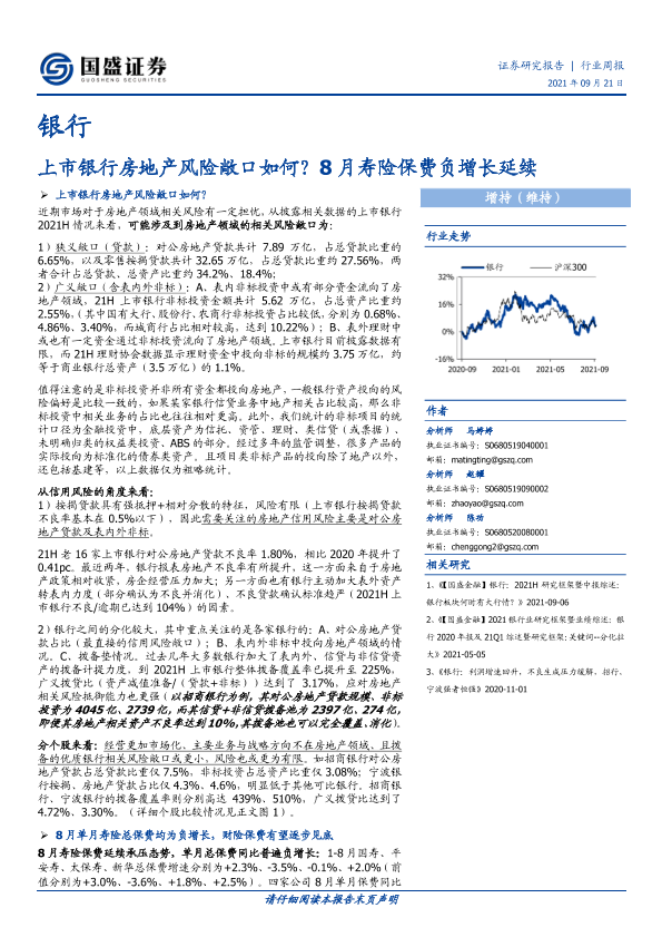 【国盛证券】【20210921】上市银行房地产风险敞口如何?8月寿险保费负增长延续-14页
