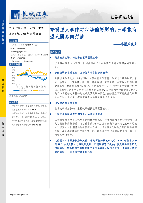 【长城证券】【20210921】警惕恒大事件对市场偏好影响,三季报有望巩固券商行情-37页