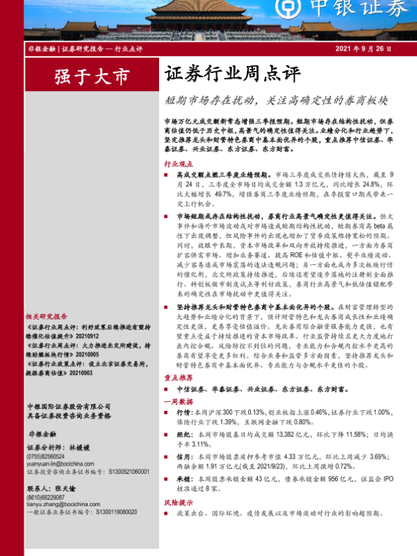 【中银证券】【20210926】证券行业周点评:短期市场存在扰动,关注高确定性的券商板块-7页