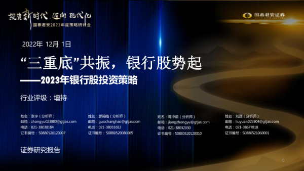 【国泰君安证券】【20221201】银行业2023年银行股投资策略:“三重底”共振,银行股势起-29页