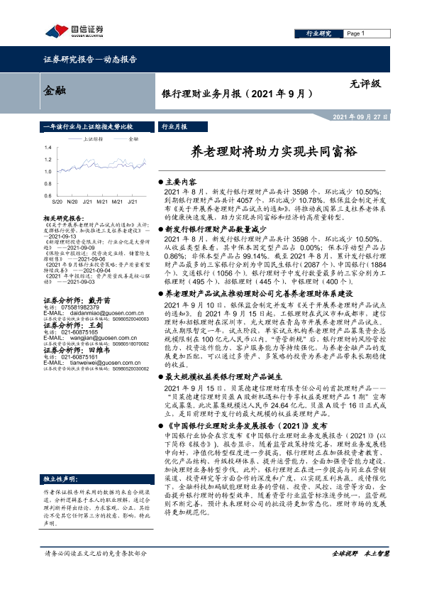 【国信证券】【20210927】银行理财业务月报:养老理财将助力实现共同富裕-14页
