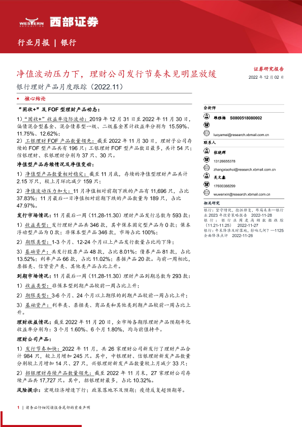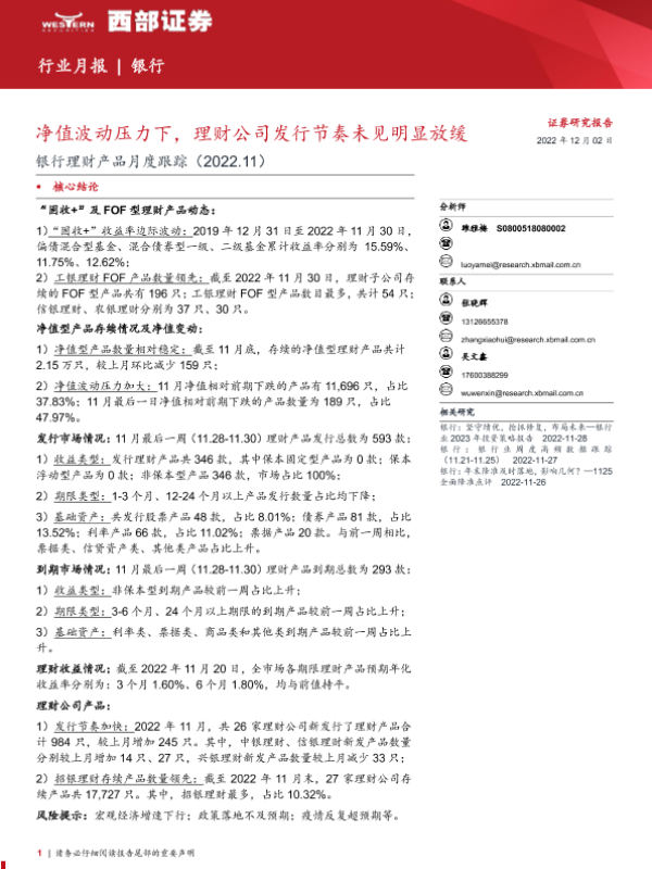 【西部证券】【20221202】银行业理财产品月度跟踪:净值波动压力下,理财公司发行节奏未见明显放缓-27页