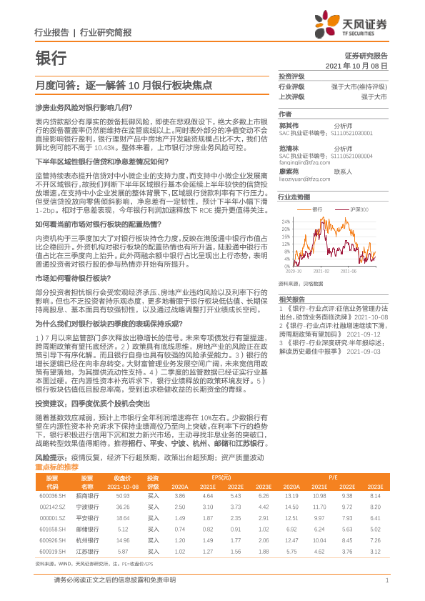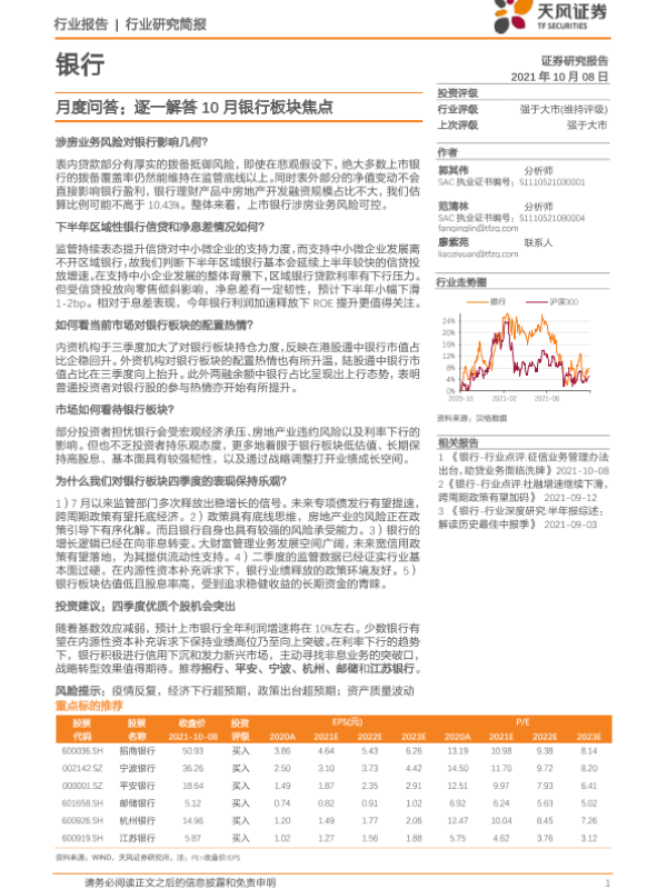 【天风证券】【20211008】银行月度问答:逐一解答10月银行板块焦点-10页