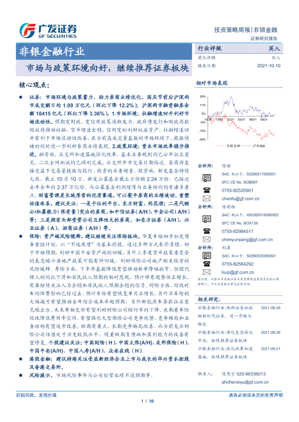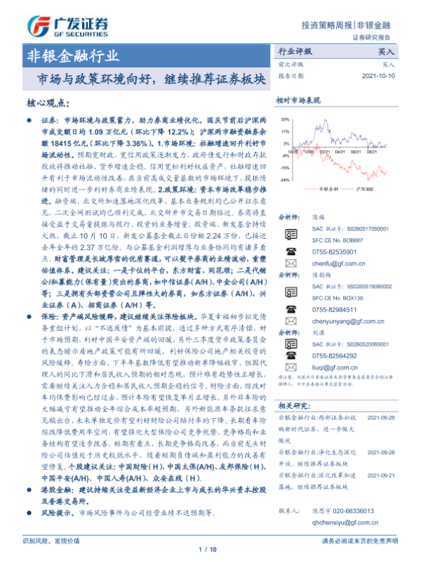 【广发证券】【20211010】非银金融行业:市场与政策环境向好,继续推荐证券板块-10页