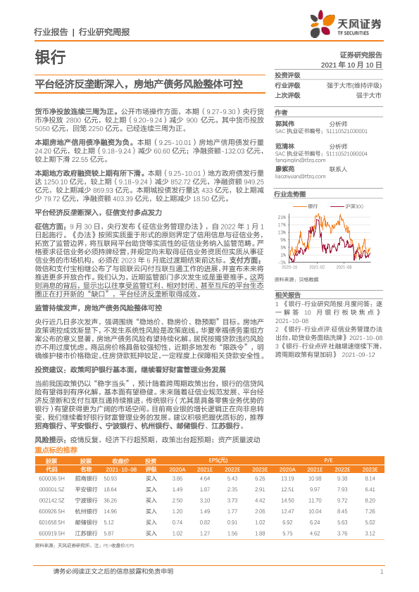 【天风证券】【20211010】行业研究周报:平台经济反垄断深入,房地产债务风险整体可控-20页