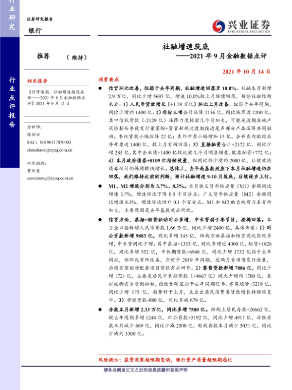信贷分析 社融增速 货币政策 金融数据 银行业