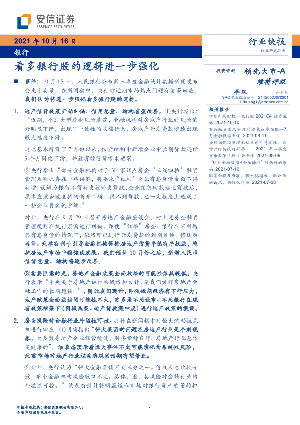 【安信证券】【20211016】看多银行股的逻辑进一步强化-4页